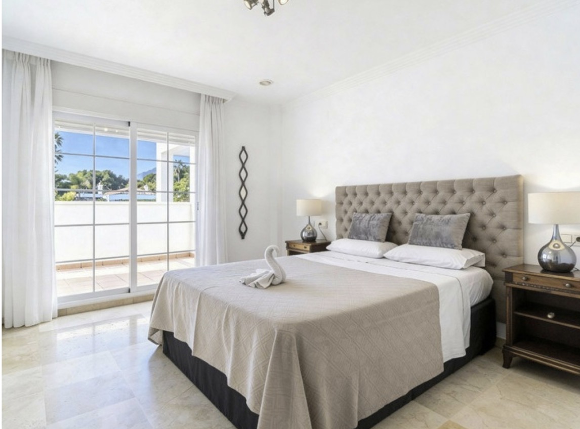 Amplio y luminoso dúplex de 3 dormitorios situado en una excelente zona de Río Real, Marbella, junto al campo de golf. La vivienda se encuentra en una urbanización cerrada y ofrece una combinación ideal de espacio, comodidad y ubicación. Cuenta con un fantástico solárium privado con vistas al mar y a la montaña, además de acceso directo a la piscina comunitaria. Está disponible ahora y el contrato es de 11 meses.