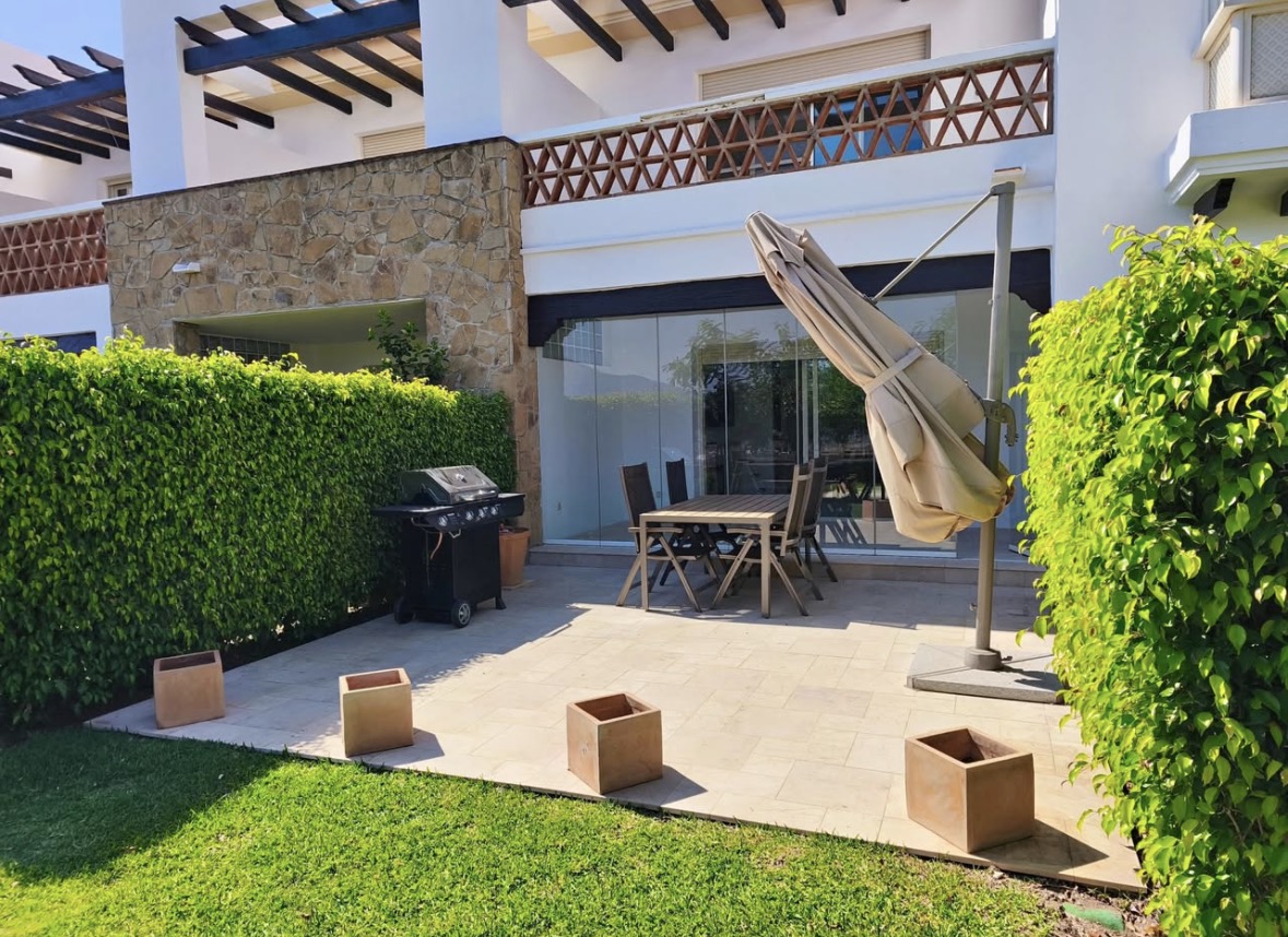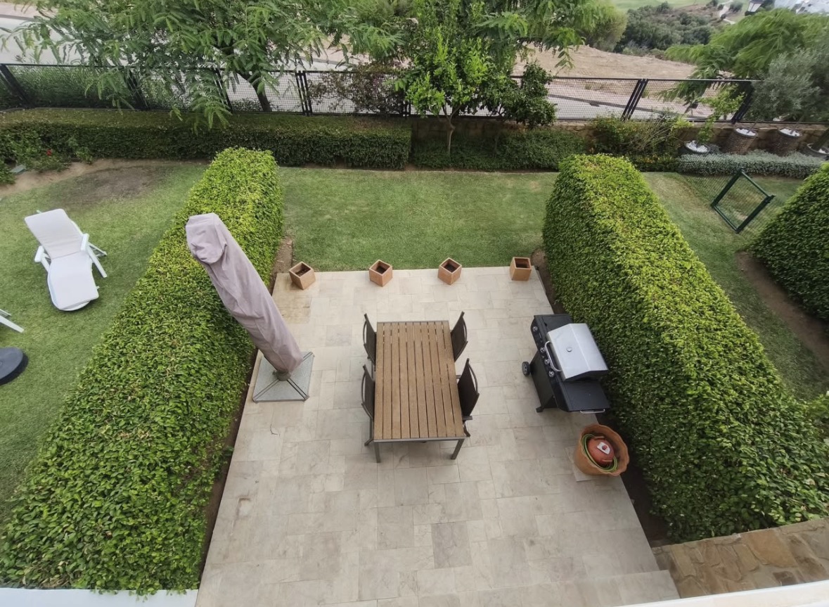 La urbanización es cerrada y cuenta con jardines perfectamente cuidados, varias piscinas comunitarias (una de ellas a tan solo 10 metros de la vivienda), así como zonas comunes de alto nivel. Además, el resort ofrece campo de golf, club social, pistas deportivas, hotel y spa.